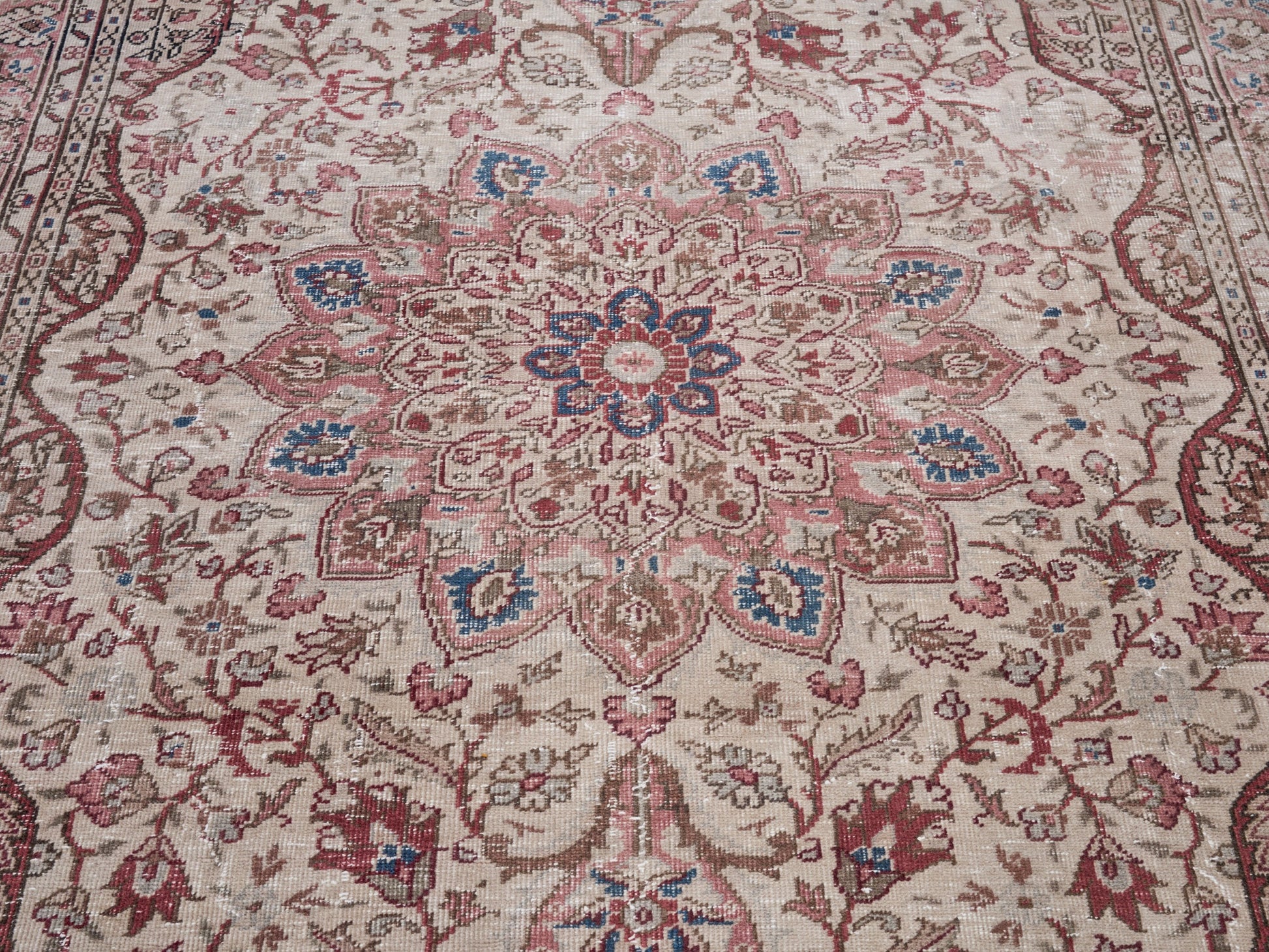 All the rugs we sell are professionally washed and cleaned; age-related wear and natural inconsistencies are inherent in these unique, handcrafted vintage rugs.