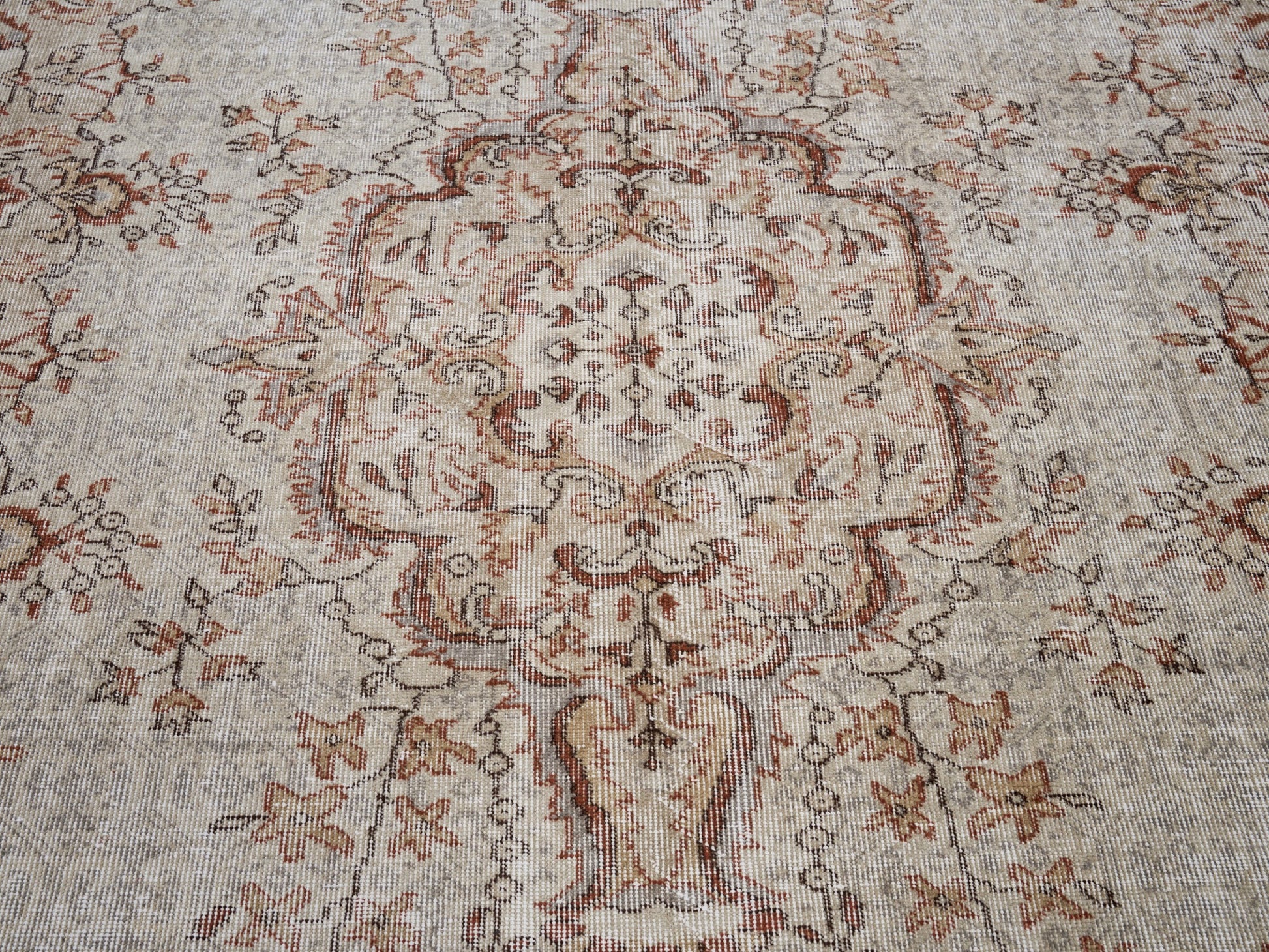 All the rugs we sell are professionally washed and cleaned; age-related wear and natural inconsistencies are inherent in these unique, handcrafted vintage rugs.