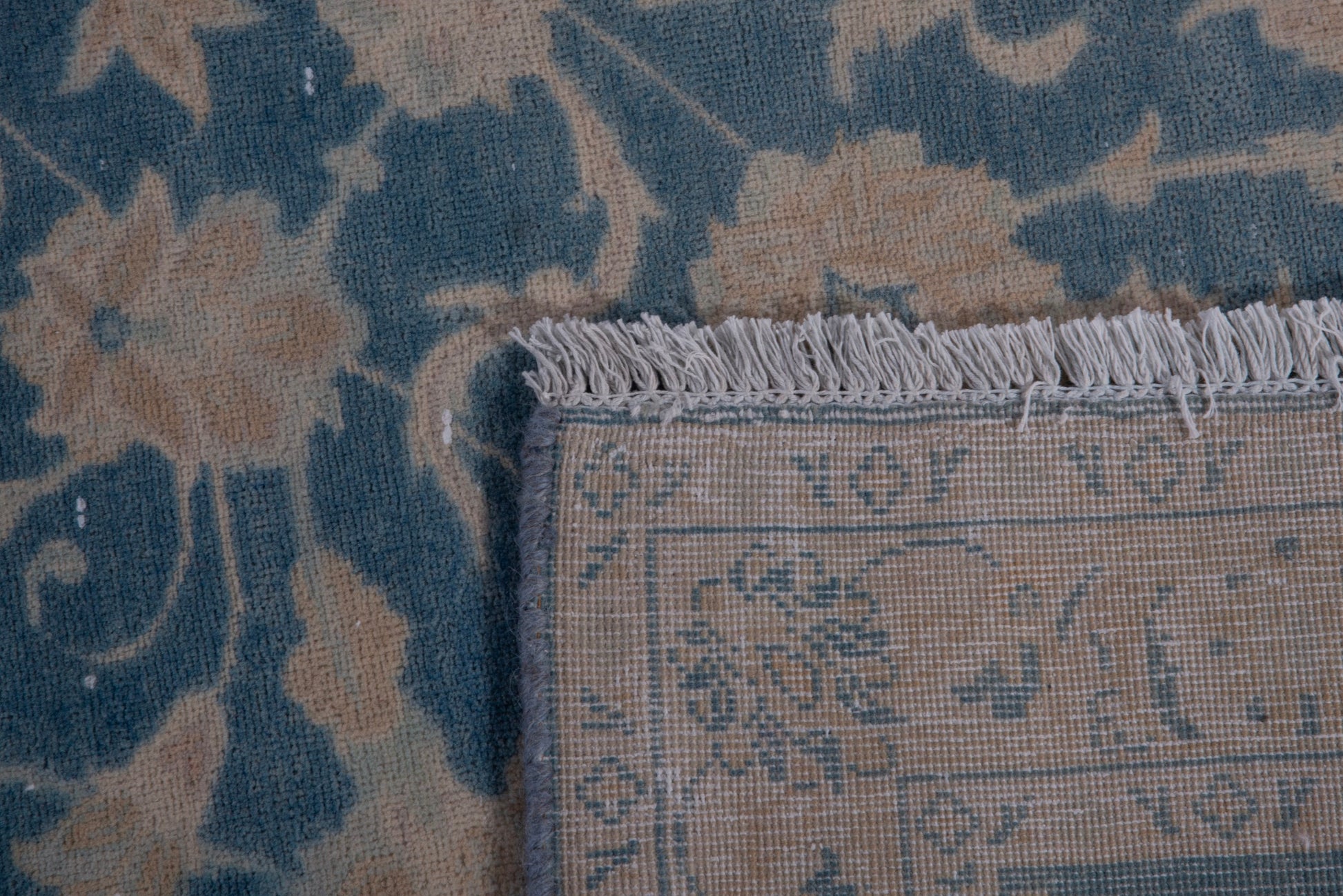 This rug is a hand-knotted rug, and edges are hand sewn.