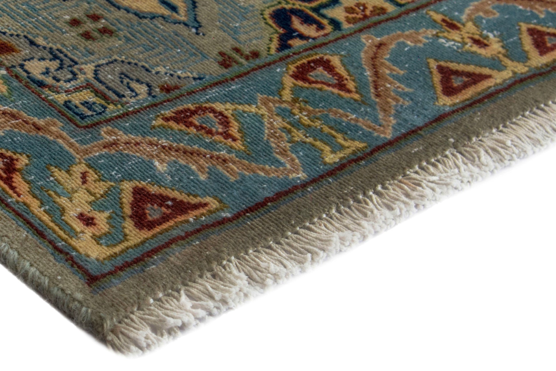 This rug is a hand-knotted rug, and edges are hand sewn.